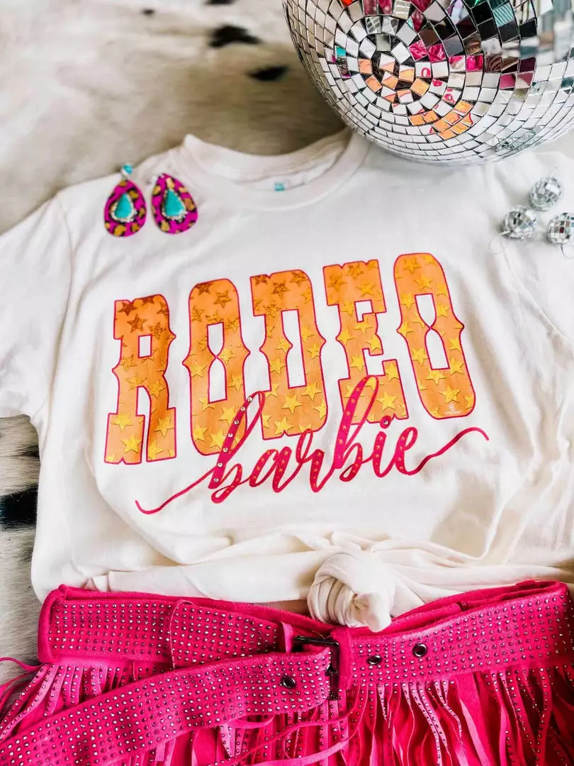 Rodeo Barbie Tee. Printed on a natural colored tee. Unisex fit. Custom-made just for you!