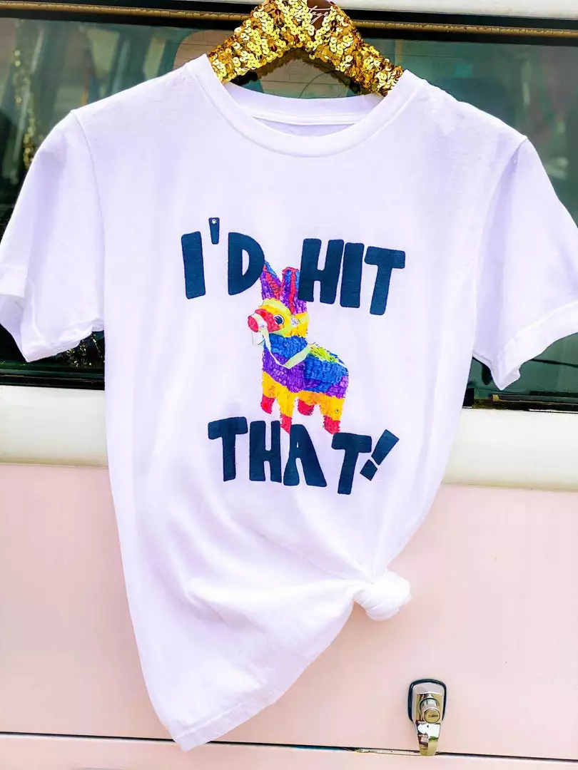 So funny! Our “I’d Hit That Tee” is so cute and perfect for Cinco De Mayo! Available in curvy sizes, true to size. Go with your regular tee shirt size!