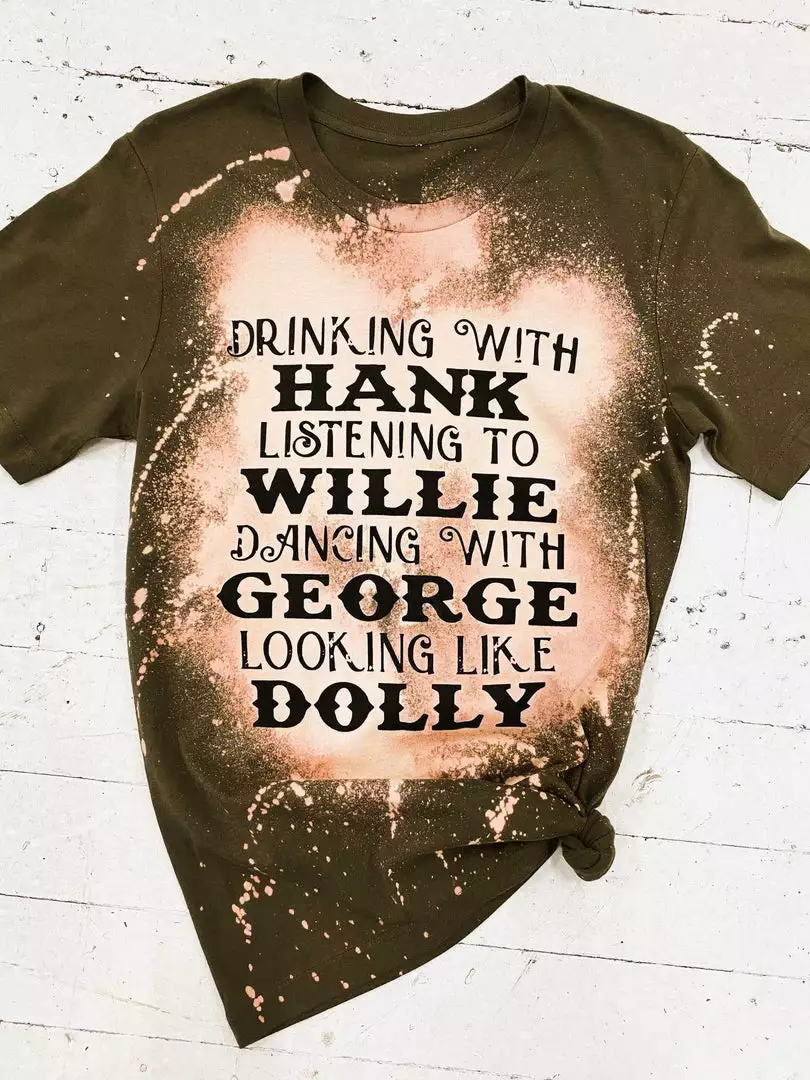 Drinking with Hank. Listening To Willie. Dancing with George. Looking Like Dolly. We are loving this Buckin’ Barn T-Shirt! Pair this with your favorite cutoff denim shorts and Western Boots!