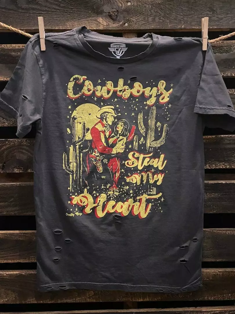 Cowboys Steal my Heart vintage distressed 1980’s unisex T shirt available in faded black
