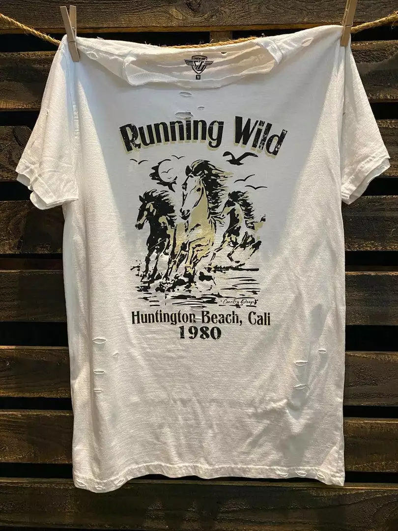 Running Wild Huntington beach 1980Â distressed T shirt in vintage wash white