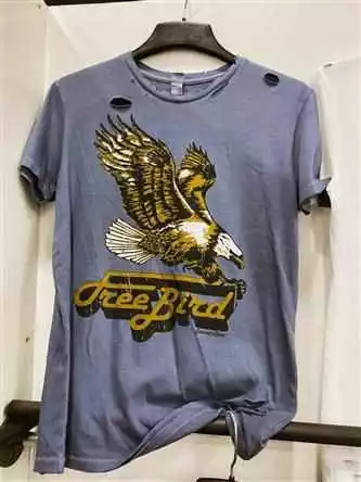 Free Bird Distressed Tee in Vintage Blue by Country Deep