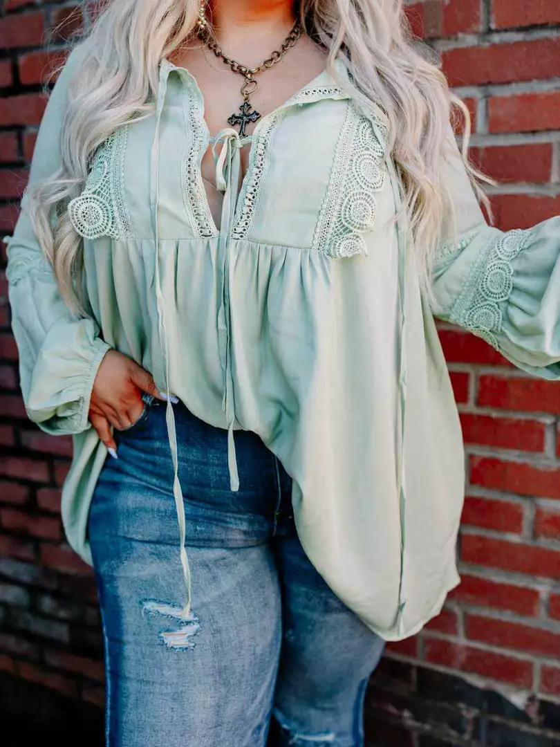 Put some sage on your style and wear the Circle Of Love Top, in sage color! This flowy and comfortable top is the perfect top for all season. It has the perfect coverage while letting you feel cool at the same time! Pair it with your favorite shorts for a clean and sleek look! Check out the crochet detailing that ties if you want more coverage and has elastic around the wrists.