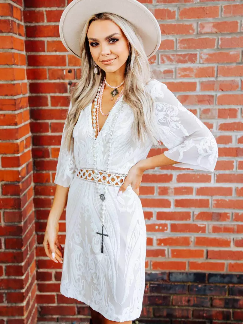 Strut your stuff on the dance floor underneath strings of lights in the Dance With You Dress. Features a champaign tone lining underneath a beautiful lace pattern overlay. The lattice lace cut-out waist turns up the heat as you turn heads for a figure-flattering look.