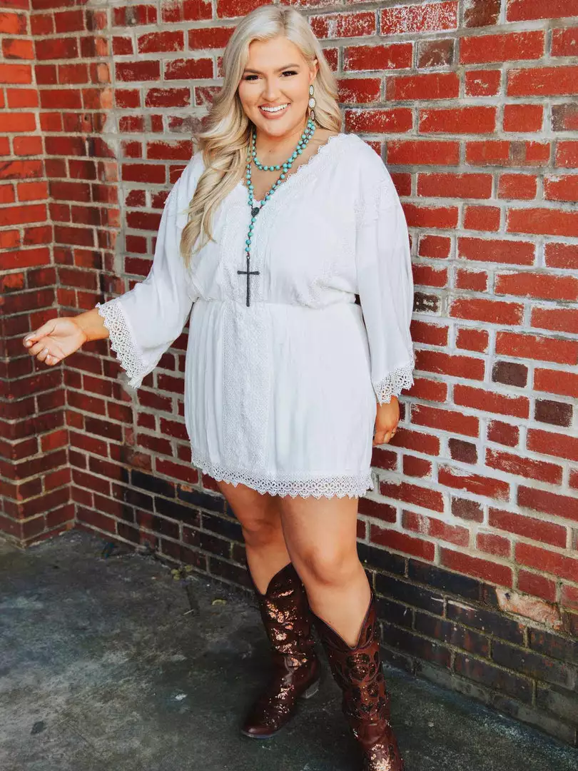 The must-have little white dress for summer that’s bringing all the boho vibes. Featuring 3/4 sleeves and wide lace trim, the Making Memories is an easy-to-wear dress that pairs well with sun, sand, and a cool drink in your hand.Â