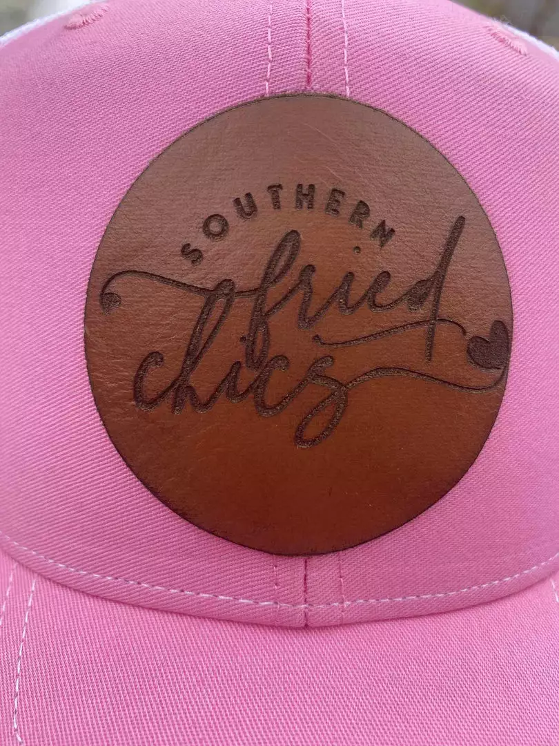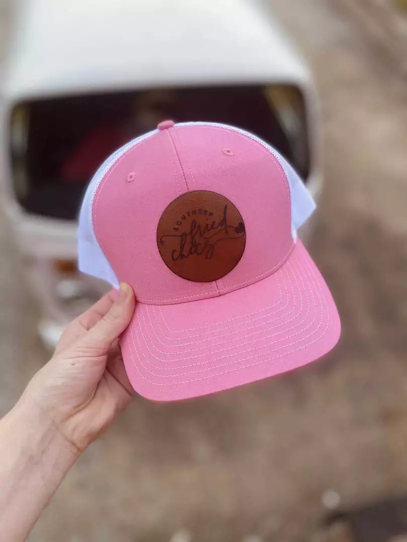 We love repping our brand! This cute mint trucker hat has a leather patch with the Southern Fried Chics logo. Pair this with your favorite graphic tee, cutoff denim shorts, and Western Boots! This hat is great for those dreadful bad hair days! Also available in other colors!