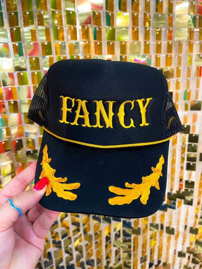 Too cute! If you are Fancy, this is the hat for you! Keep those bad hair days a little more stylish! Gold embroidery on a black hat!Â