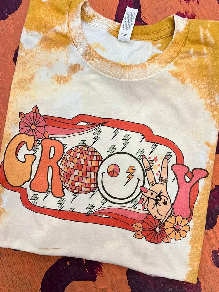 Perfect for the Groovy Chics! How cute is this t-shirt! It is so groovy! This tee is part of the Groovy Collection! Printed on a supersoft unisex tee. Natural cream colored tee.