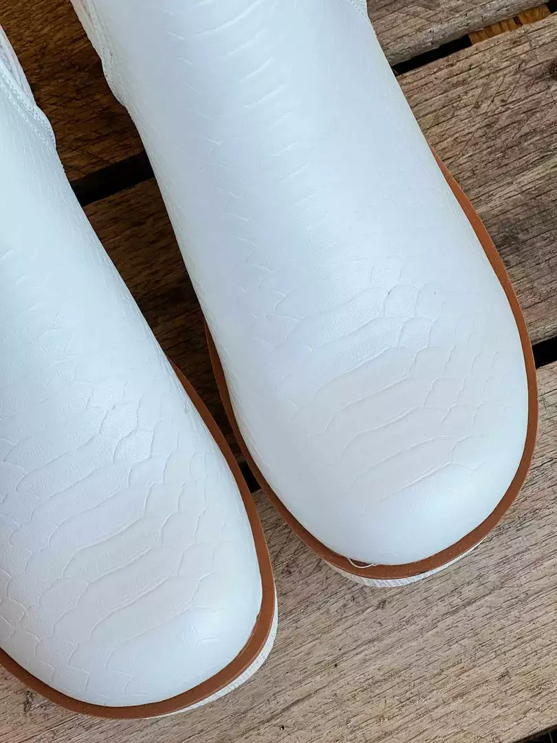 Make a statement in these booties! Stay groovy and on trend in these white booties! Perfect all year round! And not to mention, extra comfortable!Â