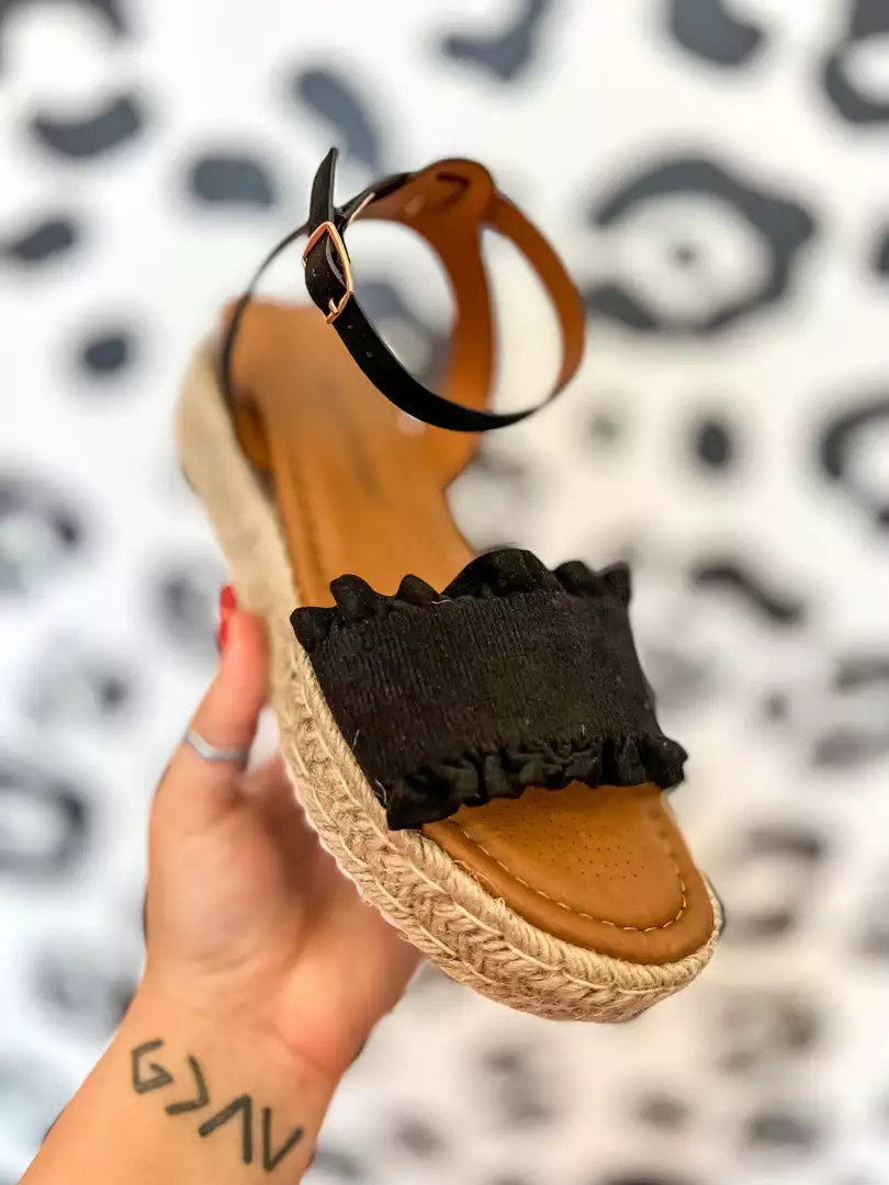 Back to the basics in these black platform sandals. Pairs perfectly with your favorite sundress or graphic tees!Â