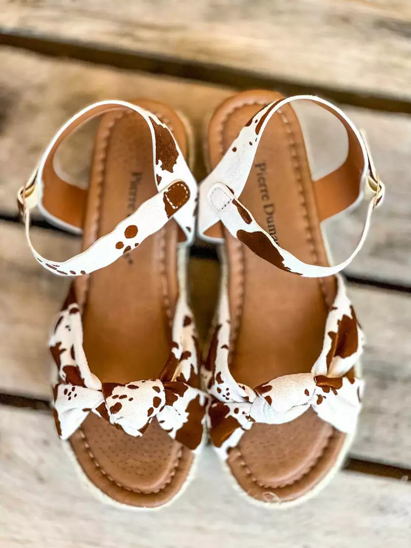 The beautiful blend of western and hippy these espadrilles are the perfect summer sandals! White and Beige cow print, open toes twisted straps, these slingback sandals are classy enough for a night out, and casual enough for a day of errands – sure to become your go-to sandal!