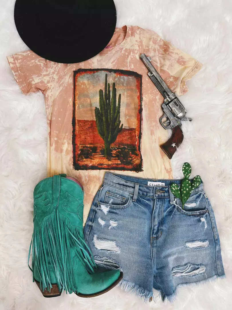 What a view! The Reno Tee features a desert view with a solo cactus. There’s nothing wrong with being alone and solo! Embrace it! Printed on a soft style unisex tee that is bleached.Â
