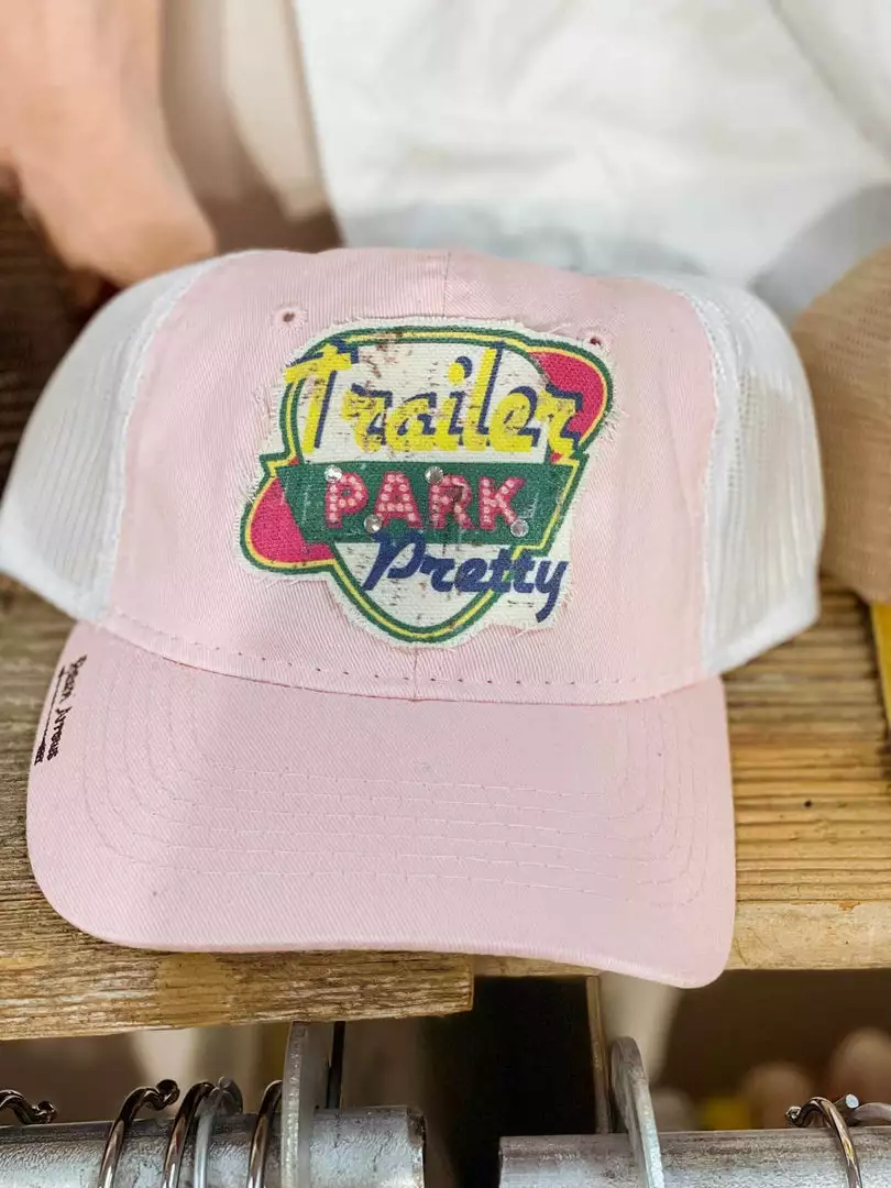 Trailer park pretty ball cap! We just love pink! Matches so many items and perfect to wear on those dreadful bad hair days! The hat is adjustable to fit you perfectly!