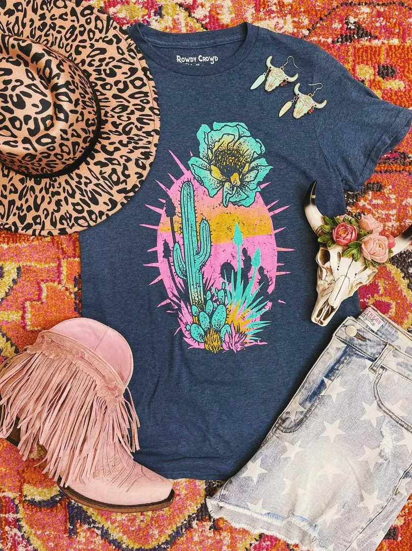 Don’t be a prick! Snag our Prickly Peach Tee! This tee is so fun and vibrant! Perfect for dressing up or down!Â