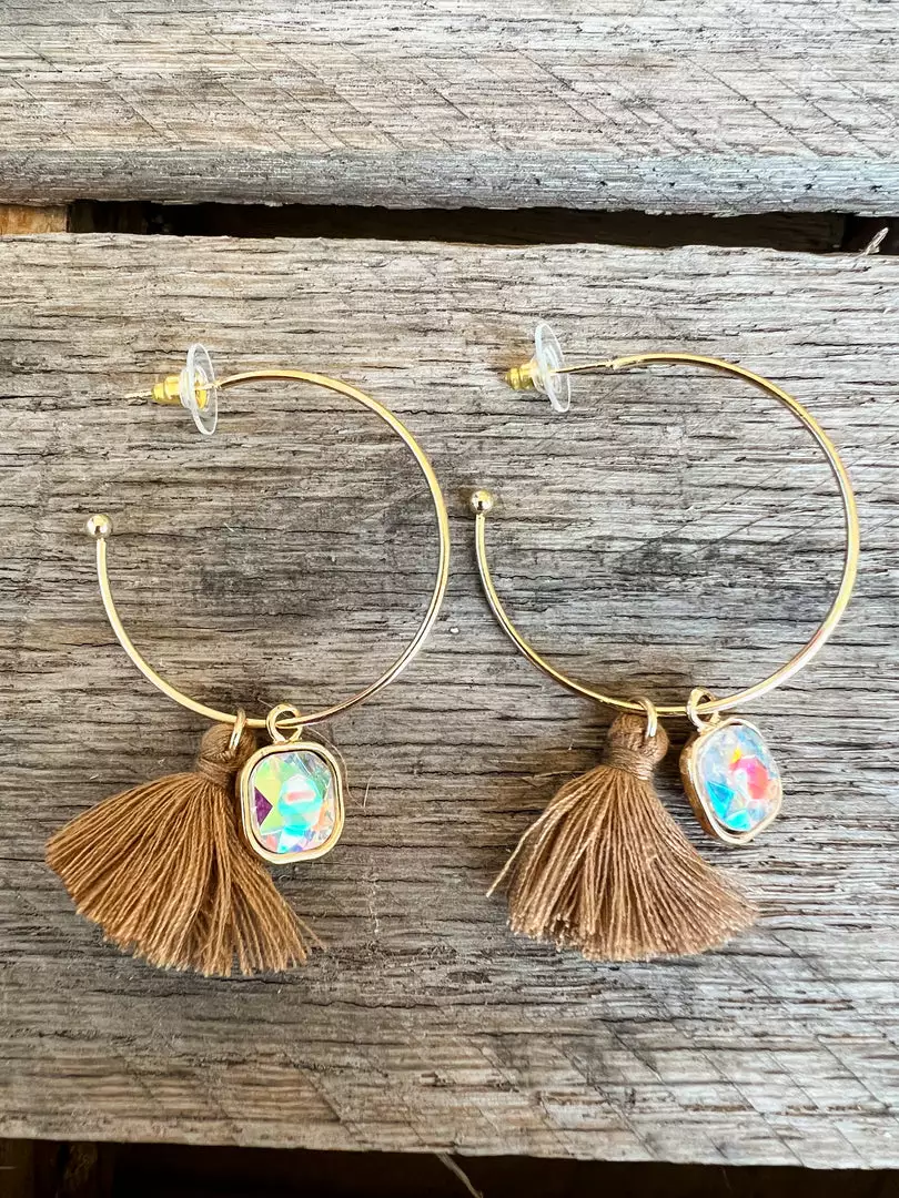 The classic hoop earring combined with trendy tassels and you’ve got yourself a match made in heaven! These gold hoop tassel earrings are neutral enough to match any outfit and the crystal charm adds just the right amount of sparkle.