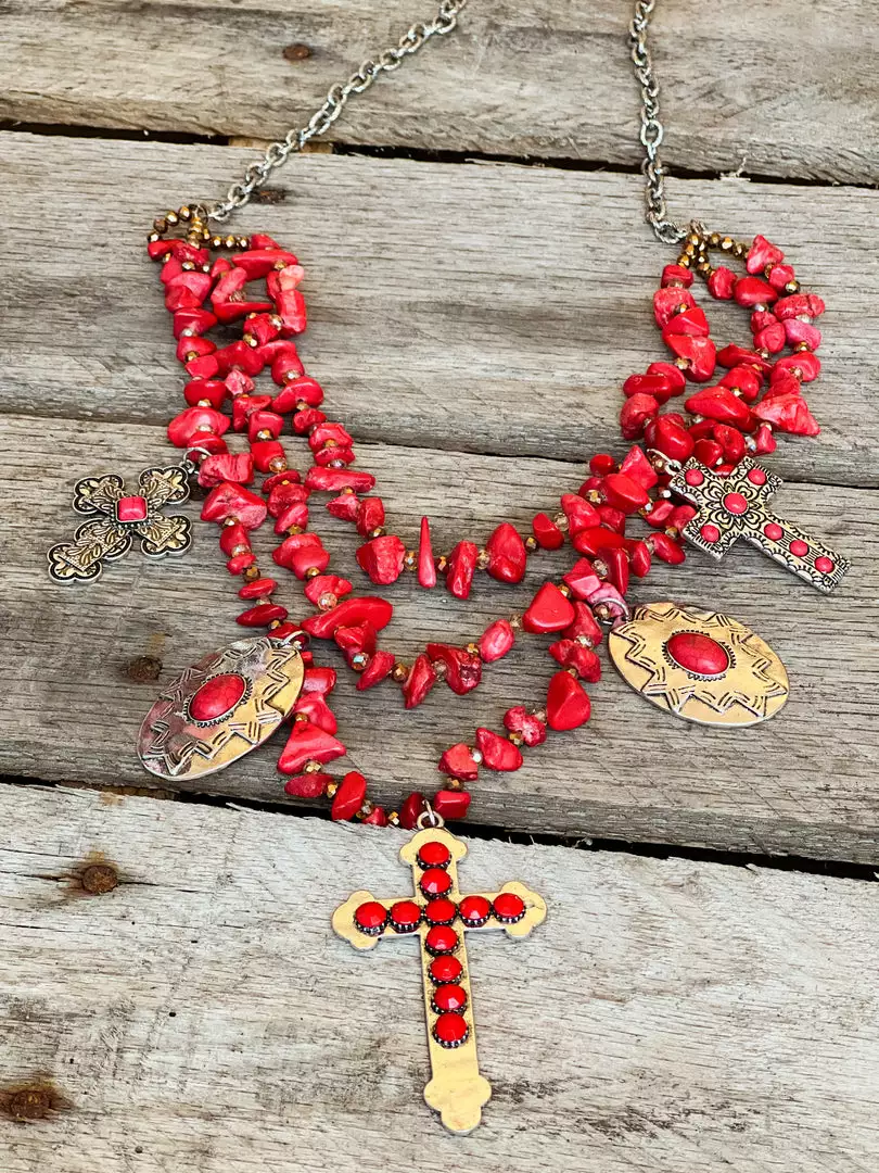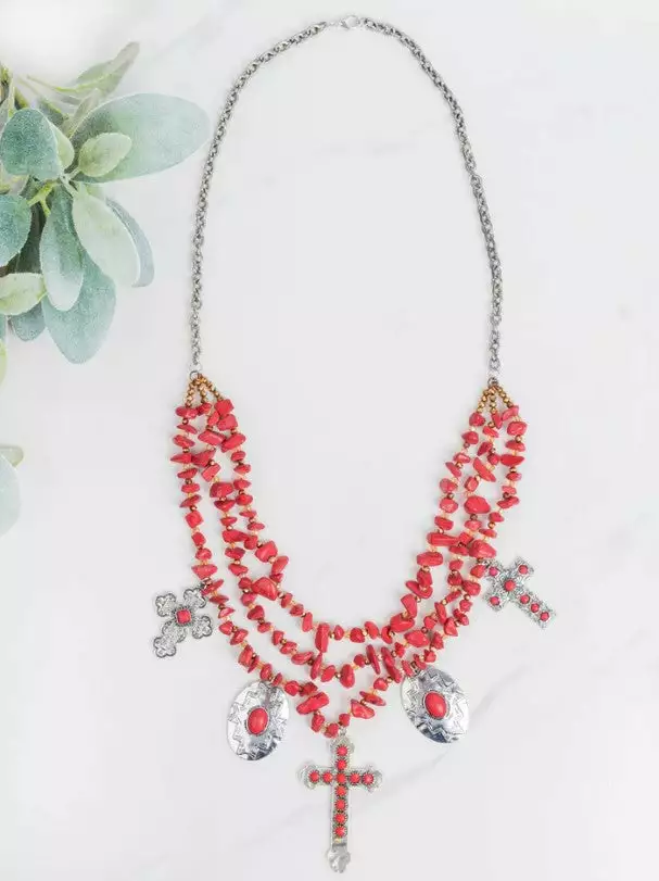 Our cross necklace with red stone beads is as at home at the club as it is on the pew! You can tell your pastor that it’s not quite a rosary!