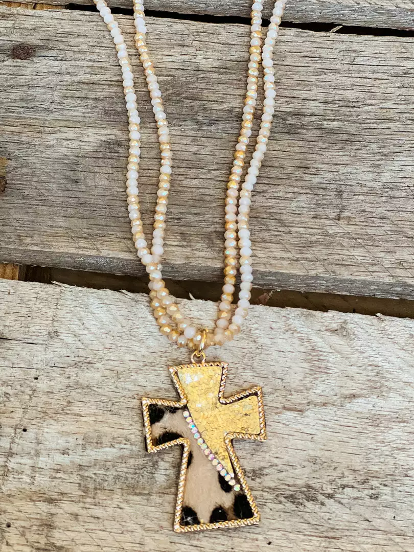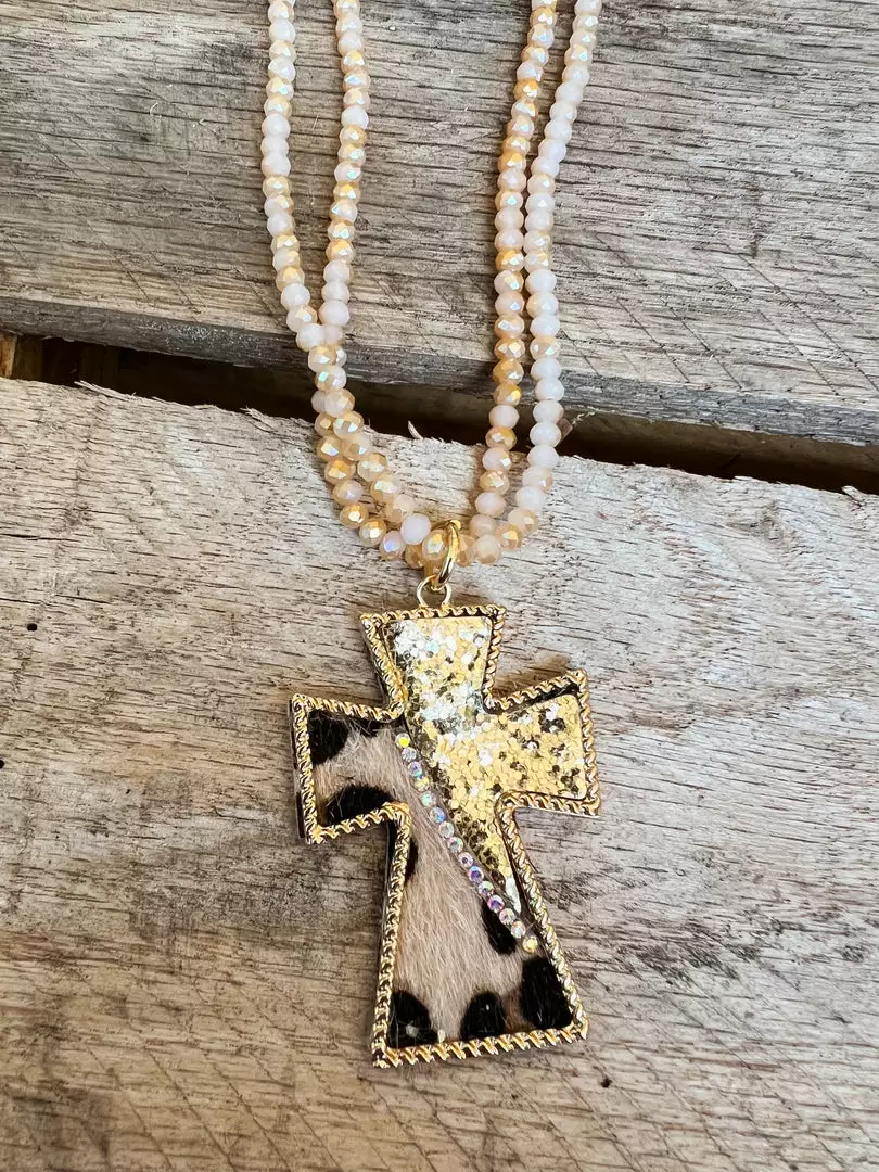 This ain’t your grandma’s cross necklace! This beauty is half golden sparkle and half leopard for a western style cross necklace that will make you the talk of the church social! Cowgirl inspired – Jesus approved.