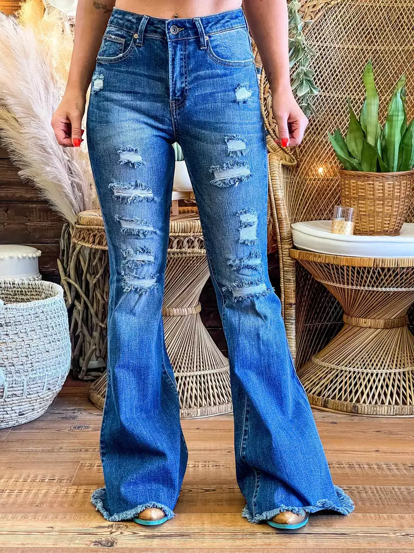 Be the first to review “Special A High Rise Boot Cut Distressed Jeans In Medium Blue” Cancel reply