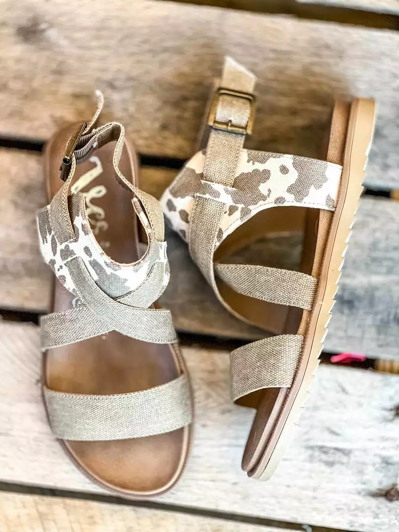 Cow Print and Beige Strap Sandals