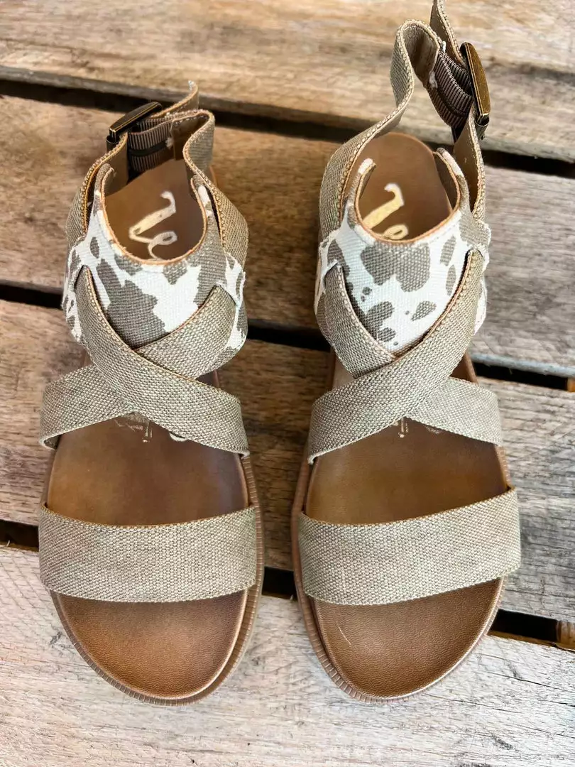 Your new favorite sandal! The cow print and beige combo is a must! Pairs perfectly with everything in your summer wardrobe!Â